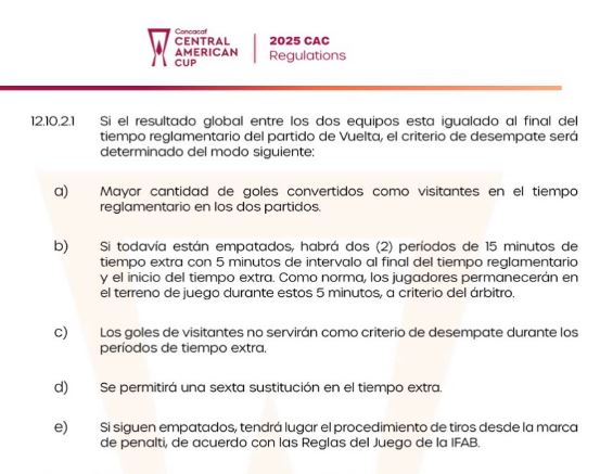 Para esta fase de eliminación directa de la Copa Centroamericana 2025, desde cuartos de final a la final del torneo, la Concacaf estableció las siguientes reglas como criterio de desempate, las cuales son las siguientes: